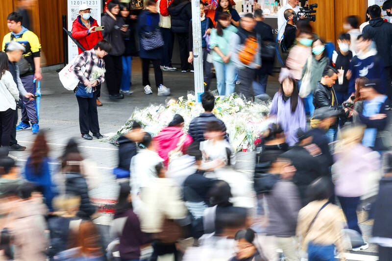 In the days since the attack, mourners have left flowers and handwritten notes near Exit M7 and outside Eslite Spectrum Nanxi department store near MRT Zhongshan Station.