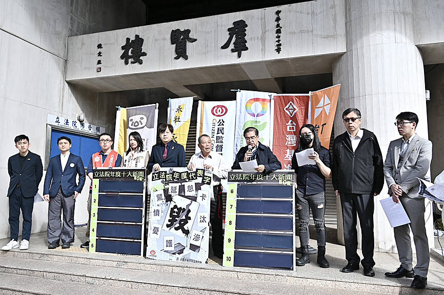 “We see the partisan political fighting by legislators, very low productivity and efficiency in legislative meetings and stalling approval for next year’s operating budget for the central government,” CCW director Hsieh Tung-ju (謝東儒) said during a news conference outside the legislature in Taipei yesterday.
