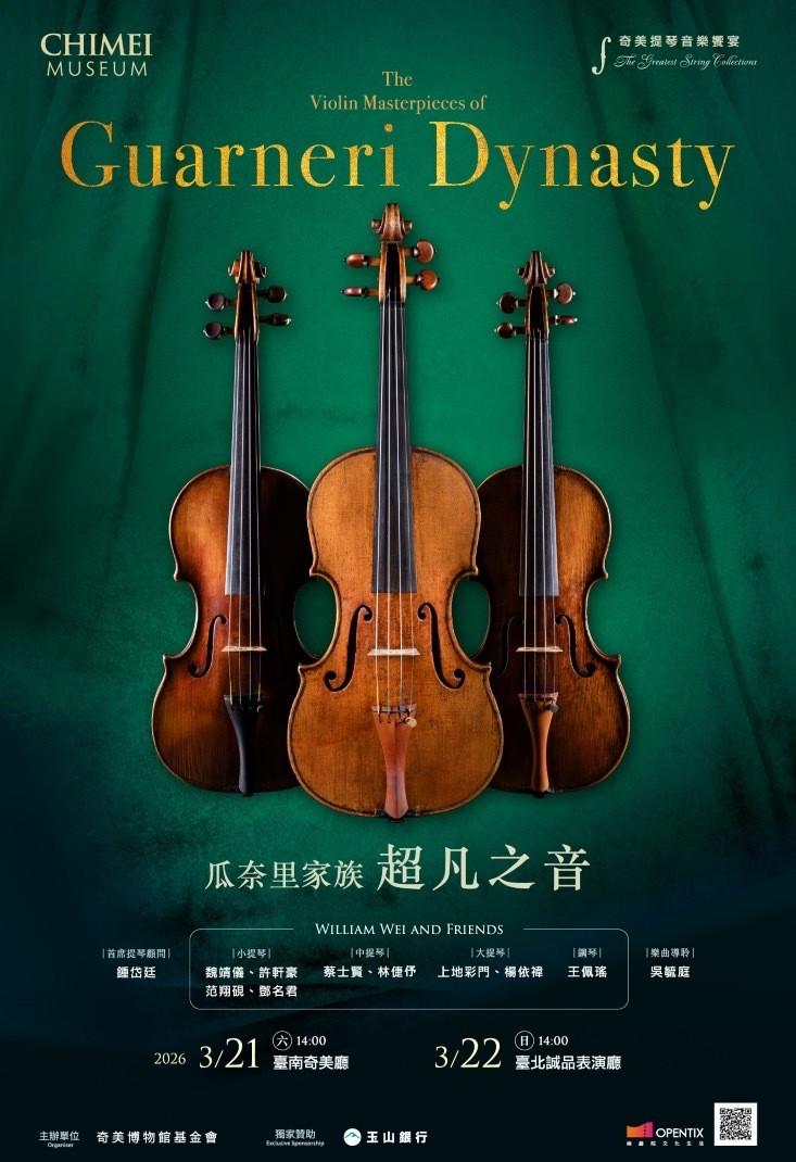 Chimei Museum today announced that it would hold violin concerts themed around the Guarneri family, featuring 11 historic instruments, on March 21 in Tainan and March 22 in Taipei.