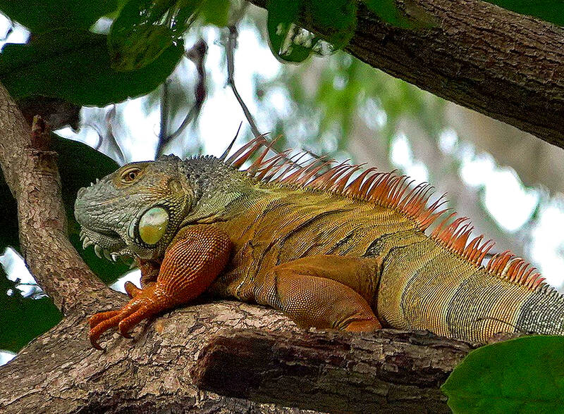 Sexually mature male green iguanas can develop yellow or orange coloration, he said.