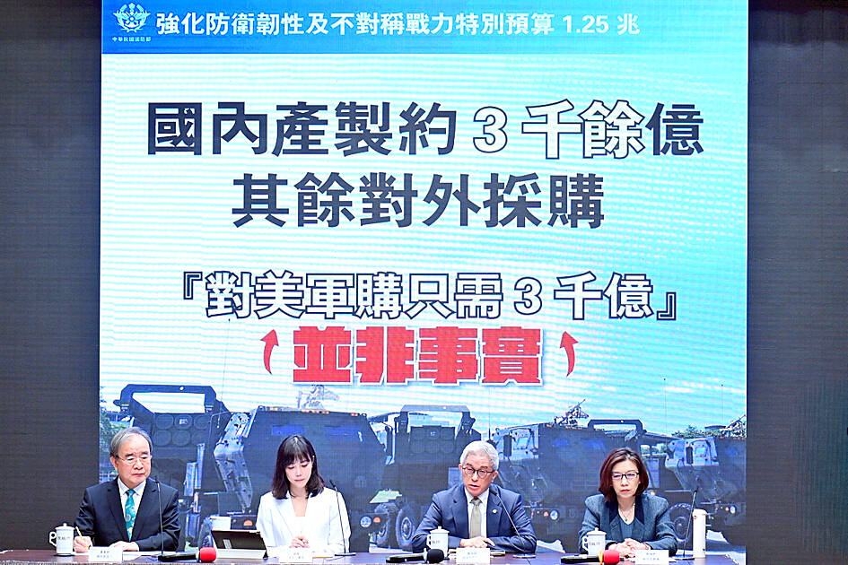 Most of the NT$1.25 trillion (US$39.57 billion) special defense budget is for arms procurement from other countries, while NT$300 billion would go toward domestic defense production, Deputy Minister of National Defense Hsu Szu-chien (徐斯儉) said yesterday.