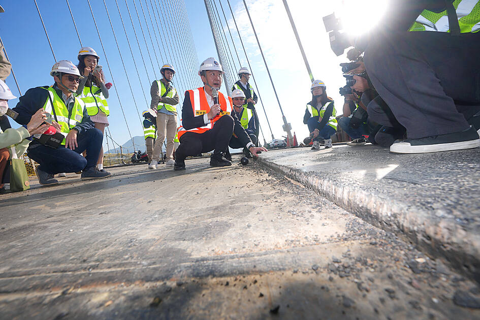Cheng Ming-chung (鄭閔中), chief of the bureau’s northern region new construction branch office, said that the bridge was designed to last for 120 years with the combined use of weathering steel, a heavy-duty coating system and GUSS pavement.
