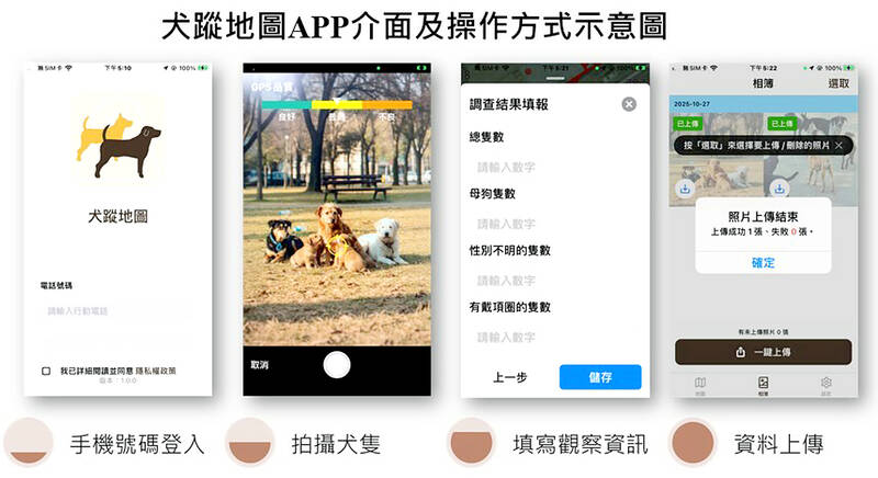 The “dog tracking map” (犬蹤地圖) app lets users submit geotagged photos of stray dogs for the ministry’s algorithms to track wild canine activity, which enables evidence-based analysis required by animal control, it said.
