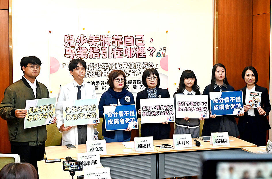 At a joint news conference by DPP lawmakers and the Taiwan Tao Zhan Civil Empowering Association, the speakers cited a survey on teenagers’ cosmetics use.