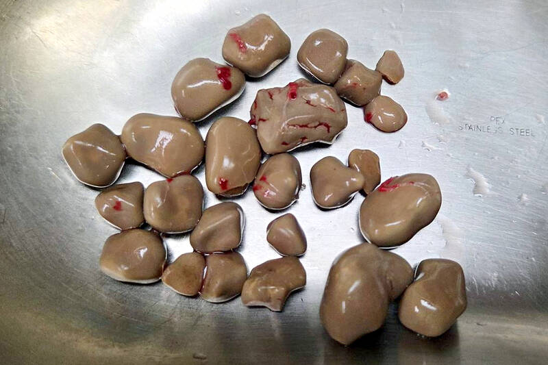 Yang Ming Hospital urologist Huang Tsai-pei (黃才倍) yesterday said the man had rarely visited a urologist and did not know he had so many bladder stones.