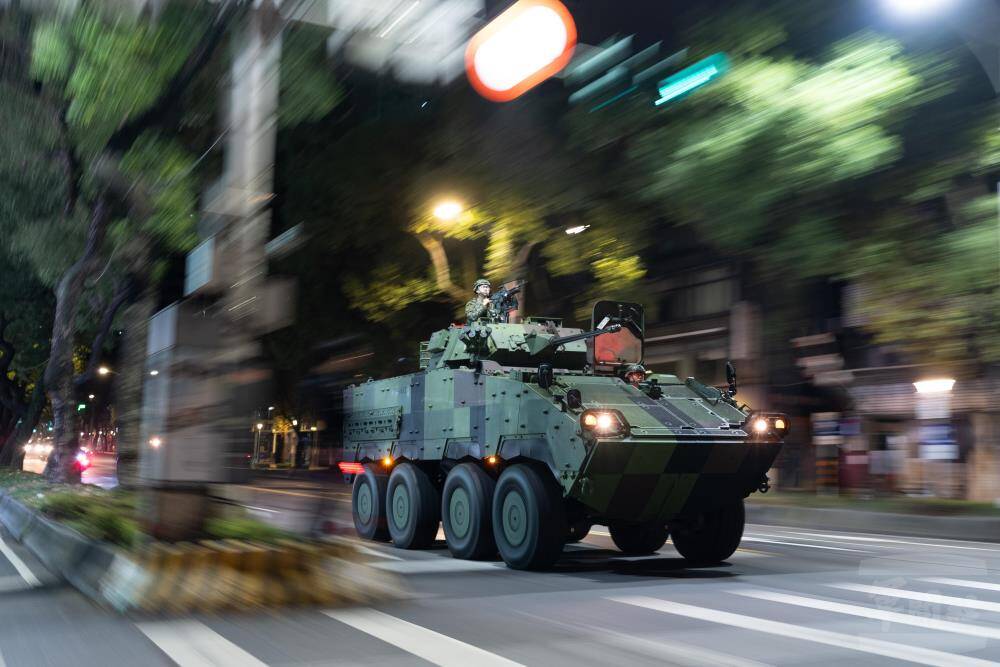 Various types of wheeled infantry fighting vehicles (IFV) cruised through the streets of Taipei Thursday as the military police conducted a drill to protect key facilities in Taiwan’s capital, the Military News Agency reported.