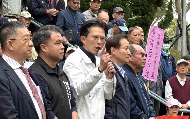 Taiwan People's Party Chairman Huang Kuo-chang (黃國昌), who attended the event, criticized Lai for failing to implement the pension increase and said that the president was flouting the law.