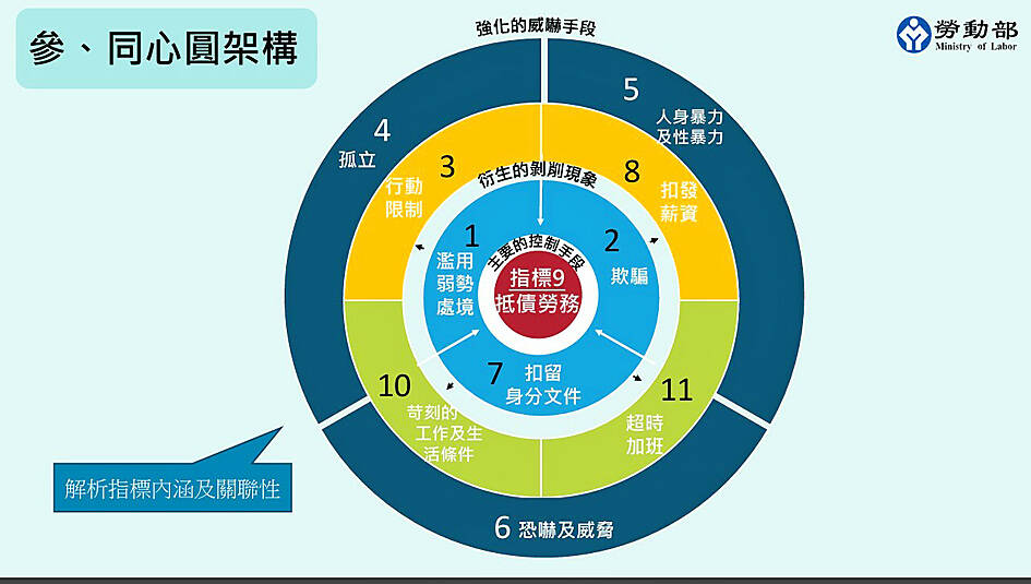 The guide introduces the International Labour Organization’s 11 forced labor indicators, including signs of forced labor such as debt bondage, restriction of movement, excessive overtime and retention of identity documents, Huang said.