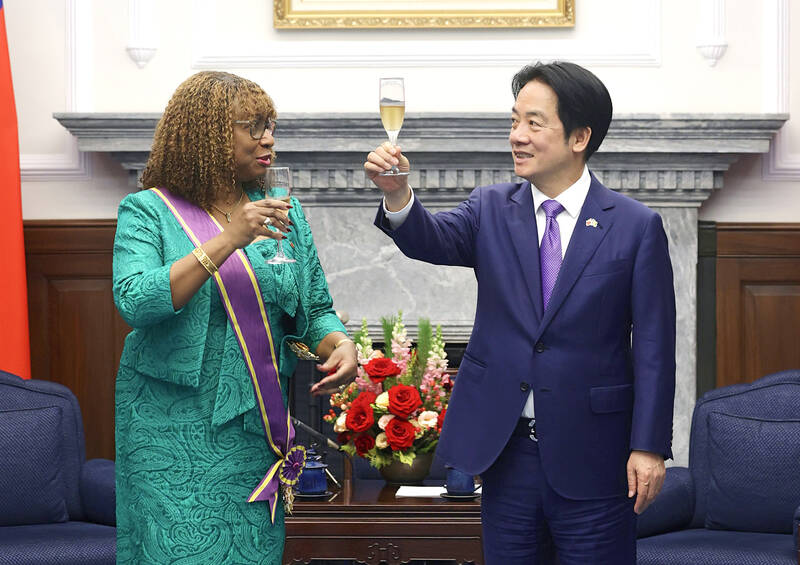 President William Lai (賴清德) yesterday bestowed one of Taiwan’s highest honors on Saint Vincent and the Grenadines (SVG) Ambassador Andrea Clare Bowman in recognition of her contributions to bilateral ties.