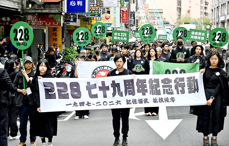 “We want participants to walk with us for renewed examination of history and people’s memories of the 228 Incident,” the organizers, including the Presbyterian Church in Taiwan, the Nylon Cheng Liberty Foundation and the Tsai Jui-yueh Dance Research Institute, said in a news release.