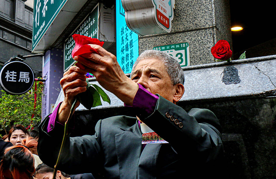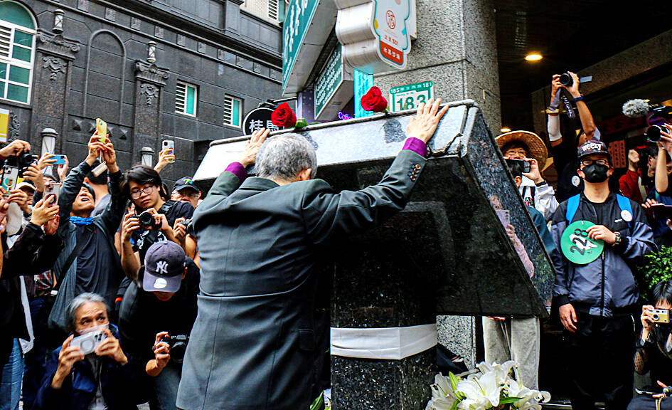 Together with Taiwan’s “freedom fighter” Deng Nan-jung (鄭南榕) and democracy activist Huang Chao-kai (黃昭凱), the three organized the first march on Feb. 15, 1987, in Tainan, when Taiwan was still under martial law, going against the KMT regime’s prohibition against any commemoration.