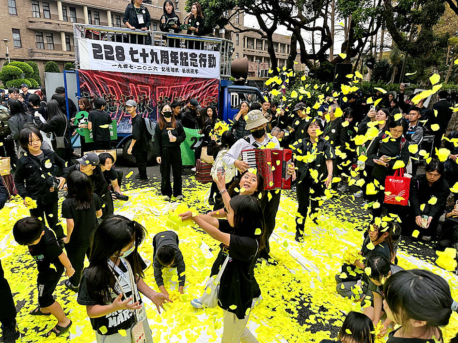 Chang Chia-en (張嘉恩), deputy head of a 228 commemoration team, said that the high level of youth participation reflects a campaign started last year to pass Taiwan’s history to the next generation.