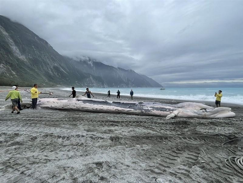 The Coast Guard Administration said that it was notified of the dead whale by the fishery operator at about 9am, and promptly dispatched a marine wildlife expert to the site, about 20km north of downtown Hualien.