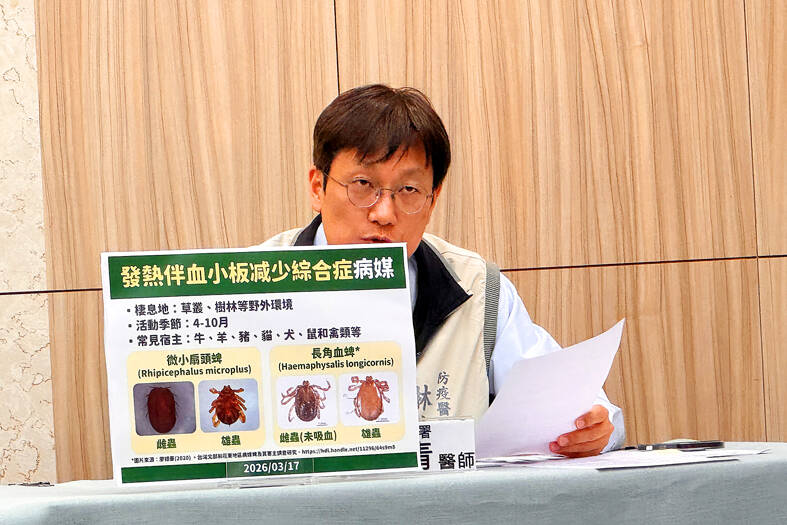 The general population’s risk of SFTS infection is relatively low, but infected ticks can be brought into Taiwan by migratory birds or imported animals, Guo said.