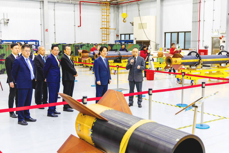 In related news, President William Lai (賴清德) yesterday inspected the National Chungshan Institute of Science and Technology (NCSIST) and said the government’s efforts to bolster national power is focused on three key areas: defense capabilities, economic resilience and whole-of-nation defense.