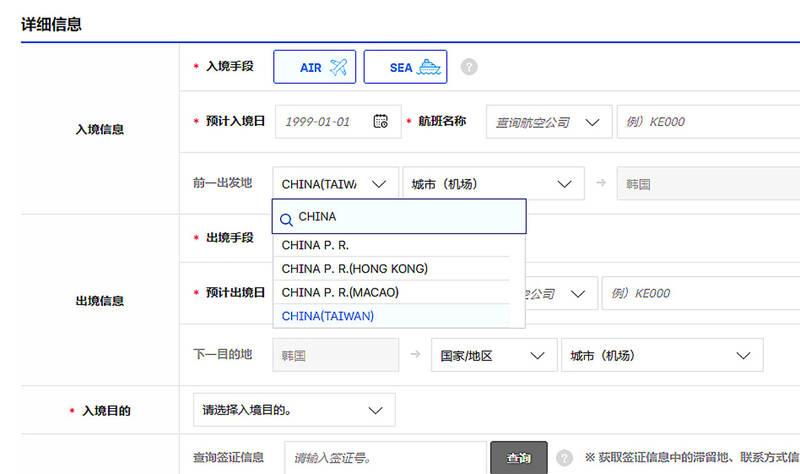 However, Taiwan has made it clear that Seoul should show its respect by revising the listing on its e-arrival system to "Taiwan" as soon as possible, he said.