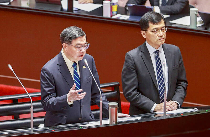 During a legislative question-and-answer session, Chinese Nationalist Party (KMT) Legislator Wang Yu-min (王育敏) asked Cho what actions the government has taken to address a shortage of ethylene, a petroleum derivative and a precursor material for plastic bags.