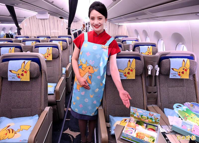 The theme extends to airport check-in and in-flight items, including dining tray liners, snacks, paper cups, napkins, seat headrest covers, pillowcases and flight attendants’ aprons, all featuring Pokemon and Taiwanese-style tile patterns, it added.