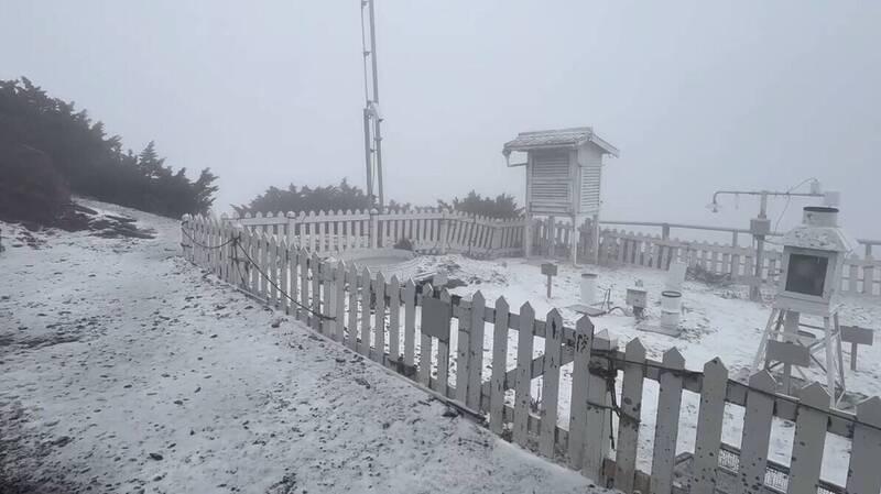 Snow fell on Yushan (Jade Mountain, 玉山), Taiwan's highest peak, at about 11:30am today before stopping at about noon, the Central Weather Administration (CWA) said, as it also warned of rainy weather during the upcoming holiday weekend.