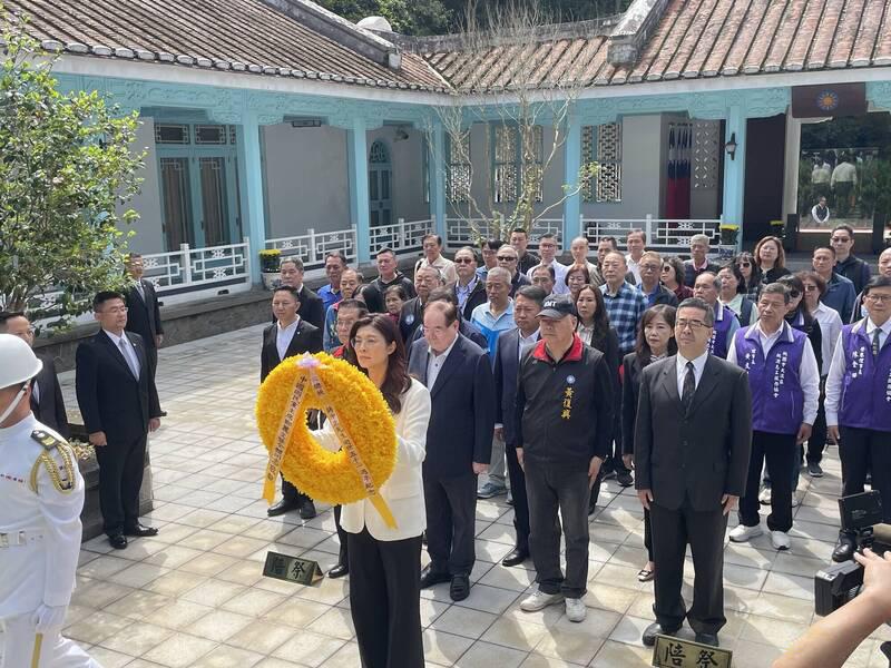 Chinese Nationalist Party (KMT) Chairwoman Cheng Li-wun (鄭麗文) today led a group of party officials to the Cihu Mausoleum to pay tribute to former president and KMT leader Chiang Kai-shek (蔣介石), as Tomb Sweeping Day on Sunday marks the 51st anniversary of Chiang’s death.