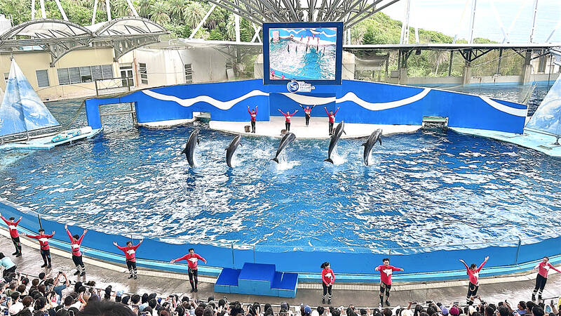 Farglory Ocean Park’s Marine Theater holds a final performance for its 10-year-old dolphin show “Wave Jump Adventure” yesterday. The venue is to be repurposed as a Dolphin Conservation Base, emphasizing animal welfare and marine education, the park said, adding that visitors can expect marine ecology presentations and educational exhibits as part of the new program.