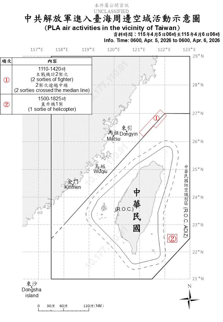 She disclosed that a Chinese frigate (FFG556) was detected in the waters north of Taiwan, with another (FFG534) in the Taiwan Strait west of Taoyuan and Hsinchu, one (FFG517) off the coast of Hualien County in the east and one more (FFG618) to the southwest of Taiwan.