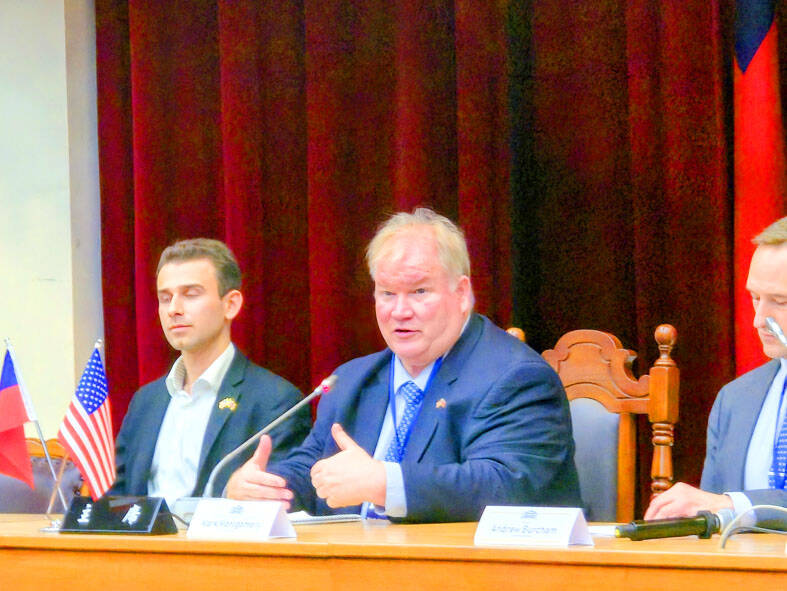 Taiwan’s defense spending is inadequate to address mounting security threats, Montgomery said, adding that lawmakers should pass the special defense budget promptly and raise defense spending to 3.5 percent of GDP within a year, with plans for a further increase to 5 percent.