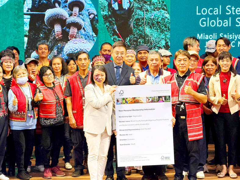 The Forest Stewardship Council (FSC) yesterday presented Saisiyat Cooperative a membership certificate during a ceremony at the Forestry and Nature Conservation Agency, marking the organization’s acceptance into the council.