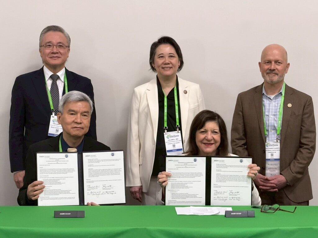 The MOU was signed yesterday morning by NHRI president Sytwu Huey-kang (司徒惠康) and AACR CEO Margaret Foti at this year’s AACR Annual Meeting in San Diego, California, which began on Friday and runs through tomorrow.