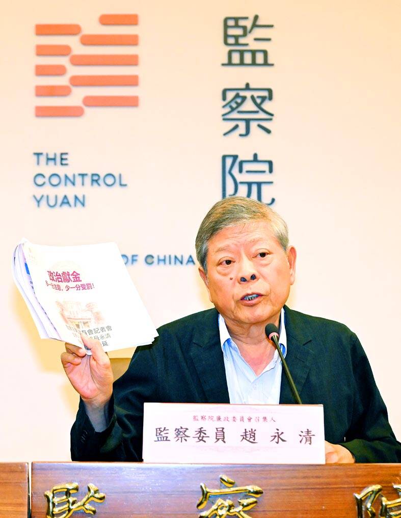 The Control Yuan has no specific recommendation for legal changes on political subsidies at the present time, but urges regulators to create better tools for monitoring politician’s use of such subsidies, Jao said.
