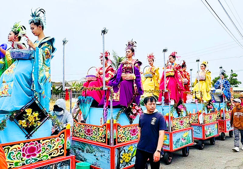 A religious event in honor of Baoshengdadi, also known as the God of Medicine, parades through Tainan’s Syuejia District yesterday. The annual event hosted by Tainan’s Cihji Temple has been listed as a national important folk tradition since 2022.