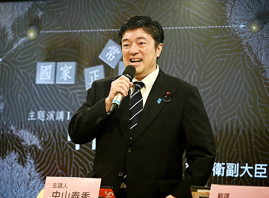Taiwan, Japan and the US must stand together and reinforce defense capabilities, not to wage a war, but to ensure China “cannot draw its sword,” Japanese House of Representatives Member Yasuhide Nakayama said at the 14th Global Taiwan National Affairs Symposium in Taipei yesterday.