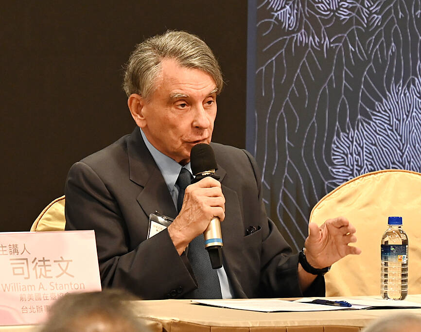 Former American Institute in Taiwan director William Stanton in his speech said the US and Taiwan are united not only by shared values, such as independence, freedom, rule of law and human rights, as well as shared interests.