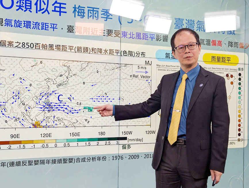 “Based on statistical models and those of other countries, average temperatures this plum rain season are likely to be between normal and slightly higher than normal, while rainfall is likely to be between normal and slightly less than normal,” he said.