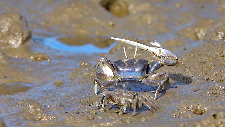 University biology professor Shih Hsin-te (施習德) and doctoral candidate Chang Kai (張凱) analyzed 20 types of interactions among the crabs and found that they communicate by waving their dominant claws, the university said.