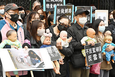 CLOUD CONCERNS: The privacy of children would be a big worry if surveillance data are to be uploaded to the Internet, protesters said at the Legislative Yuan