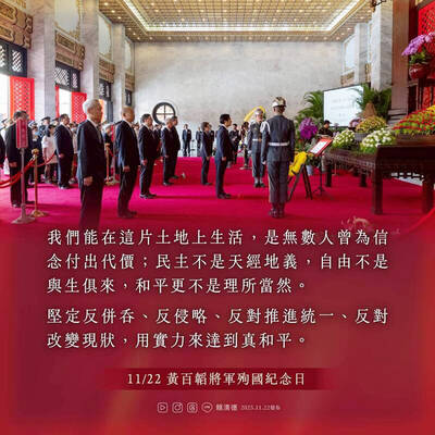 The people we should remember are the soldiers of the Armed Forces, not communist spies, President William Lai (賴清德) wrote on Facebook yesterday, in an apparent reference to Chinese Nationalist Party (KMT) Chairwoman Cheng Li-wun (鄭麗文) attending an event honoring people killed during the White Terro