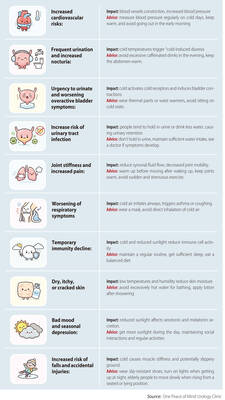 WATCH OUT: Low temperatures do not just make people feel ‘cold,’ but also bring risks to the heart, blood pressure, urination, joints, immunity and emotions, a urologist said