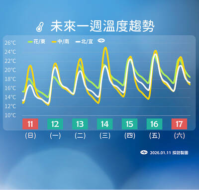 A continental cold air mass kept much of Taiwan chilly early yesterday, but temperatures are expected to rebound gradually starting today as the system weakens, the Central Weather Administration (CWA) said.The lowest temperature recorded in low-lying areas yesterday was 8.3°C in Chiayi County’s Jhu
