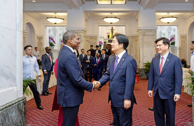 Saint Kitts and Nevis Prime Minister Terrance Drew yesterday pledged to continue advocating for Taiwan’s meaningful participation in international organizations during a meeting with President William Lai (賴清德) in Taipei.At the Presidential Office, Drew said that Taiwan and his country share values