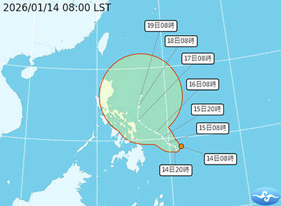 BACK TO WINTER: A strong continental cold air mass would move south on Tuesday next week, bringing colder temperatures to northern and central Taiwan