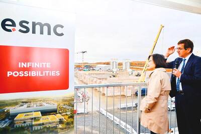 Taiwan believes in Taiwan Semiconductor Manufacturing Co’s (TSMC) first European fab, former president Tsai Ing-wen (蔡英文) said on Tuesday, during a visit to the plant’s construction site in Dresden, Germany.It is a project “Taiwan believes in as much as it believes in TSMC itself,” Tsai said during