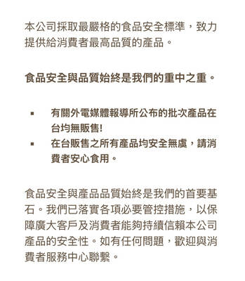 Nestle Taiwan yesterday said that affected batches of baby formula have not been sold in Taiwan, even as at least 30 countries have issued recalls over concerns that the products contain the toxin cereulide.In a statement, the company said that its products sold in Taiwan are all safe for consumptio