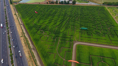 A corn maze at Cool Patch Pumpkins is pictured in Dixon, California, on Monday. Cool Patch Pumpkins owner Taylor Cooley said that the pumpkin patch and 16.2 hectare maze are open for the fall season through Halloween. It typically takes at least 45 minutes to complete the maze, which has five bridge