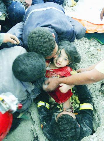Rescuers asked for total silence as they sought to precisely locate her, witnesses said. A half-hour later, a Spanish volunteer, wedged in a tiny hole in the rubble, handed the black-haired little girl dressed in a red shirt up to other rescuers. She appeared unharmed.