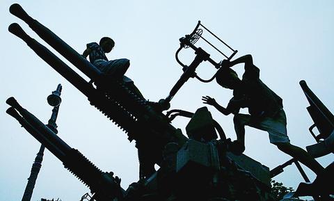 Showcasing phallus-shaped portable shrines and pink penis candies, Japan’s annual fertility festival yesterday teemed with tourists, couples and families elated by its open display of sex. The spring Kanamara Matsuri near Tokyo features colorfully dressed worshipers carrying a trio of giant phallic-shaped objects as they parade through the street with glee. The festival, as legend has it, honors a local blacksmith in the Edo Period (1603-1868) who forged an iron dildo to break the teeth of a sharp-toothed demon inhabiting a woman’s vagina that had been castrating young men on their wedding nights. A 1m black steel phallus sits in the courtyard of
