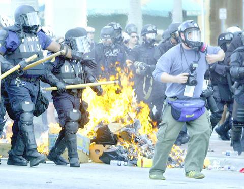 It was not immediately known how many people were injured. Some journalists were among the hurt, struck by thrown debris or rubber bullets. Miami police said two officers were injured.