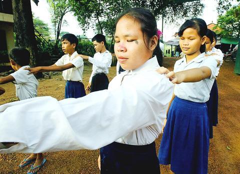 At the group's school for the blind in Phnom Penh, some children giggle and chatter during class. Others diligently work.