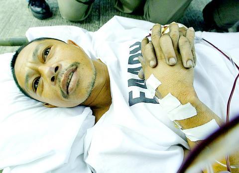 Andang's wounds were believed to be serious, but Habacon said he wasn't sure if his legs would need to be amputated. TV footage showed the wounded suspect being carried away on a stretcher by soldiers. He was conscious and at times smiled.
