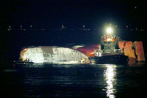 As hopes faded for finding more survivors inside the MS Rocknes, which was turned over and partly submerged in the frigid waters, experts placed containment booms around the wreck to prevent any of more than 500 tonnes of oil and diesel fuel aboard from spreading.
